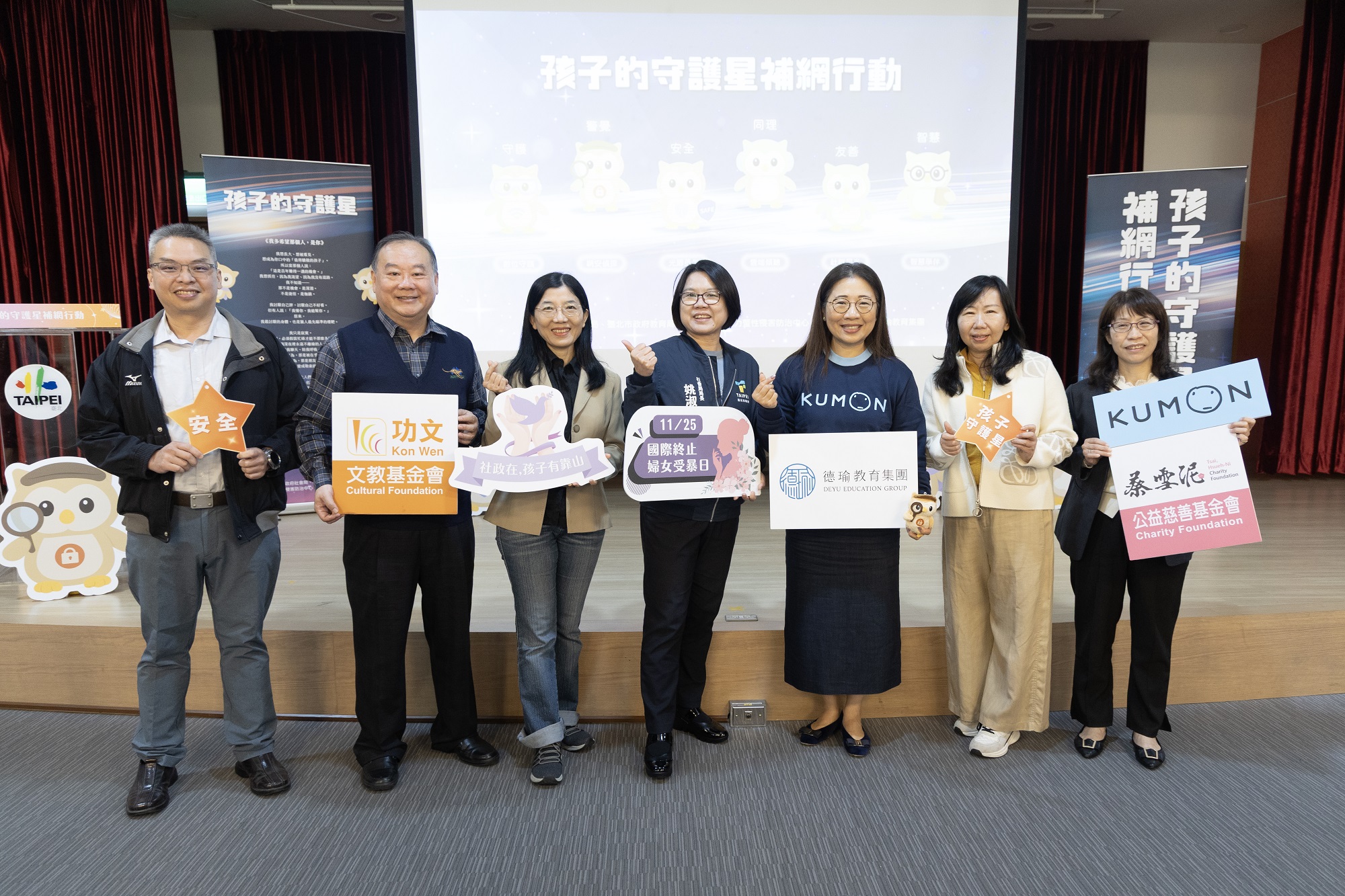 今日(11/25)上午於台北市政府舉行的《孩子的守護星—補網行動》記者會中,台北市副市長林奕華表示,市府將持續推動性別暴力防治、家庭支持及兒少保護工作。本次計畫以「校外場域」為強化重點,是台北市推廣數位性暴力防治的重要里程碑。副市長期盼每個孩子都能獲得妥善保護,讓網路不再成為風險入口,使每位成人都能成為孩子的「守護星」。