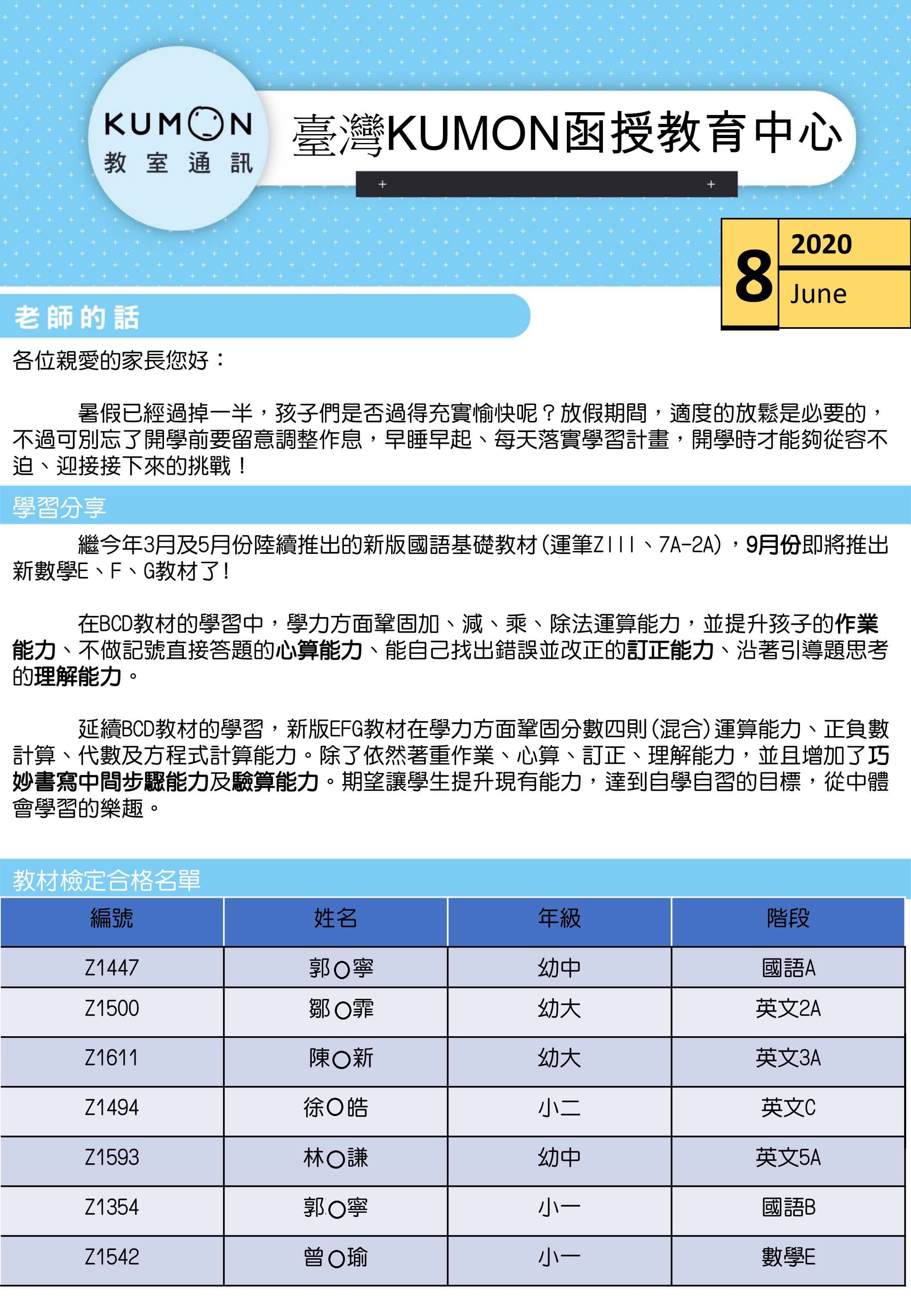 函授中心教室通訊 202008
