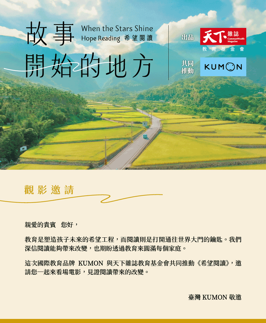 KUMON與天下雜誌教育基金會共同推動的《希望閱讀》觀影會